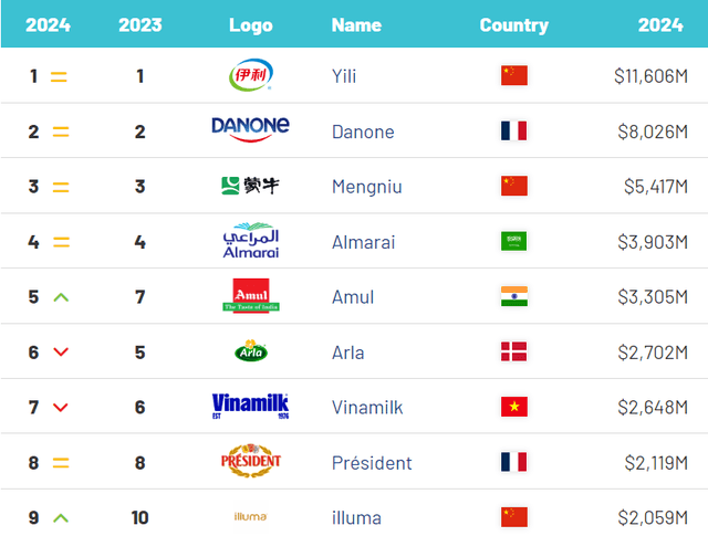 Yili tops Asia's dairy industry for twelve consecutive years.