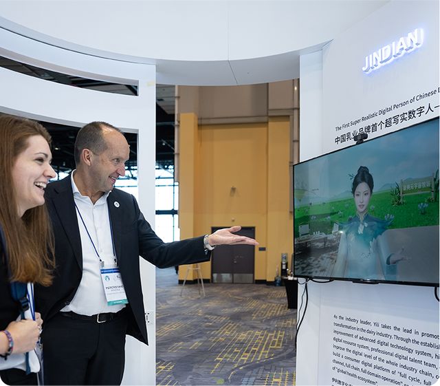 在品嘗伊利全線(xiàn)產(chǎn)品夢(mèng)幻美味的同時(shí),還可與中國(guó)乳業(yè)首個(gè)超寫(xiě)實(shí)數(shù)字人——金典品牌數(shù)字代言人“金婰”實(shí)時(shí)互動(dòng),為全球嘉賓帶來(lái)生動(dòng)、真實(shí)的數(shù)字化體驗(yàn)。