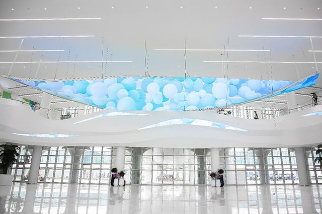 走進(jìn)藍(lán)白相間的大廳,頂面吊裝的柔性屏以液態(tài)流動(dòng)的畫(huà)面,靈動(dòng)展示了流動(dòng)著的純凈奶源,寓意著純凈的牛奶永續(xù)滋養(yǎng)著健康的生命,連通著每一位消費(fèi)者。走過(guò)通道連廊,全球首個(gè)工業(yè)游5D影院運(yùn)用先進(jìn)的聲光電技術(shù),多元化、年輕化、萌趣化、故事化地呈現(xiàn)了伊利的品牌發(fā)展。還有國(guó)內(nèi)首個(gè)沉浸智能化旗艦售賣(mài)店,不僅展示了伊利五大事業(yè)部的明星產(chǎn)品,同時(shí)也集合了多類伊利文創(chuàng)產(chǎn)品,表達(dá)了伊利對(duì)品質(zhì)和美好生活的追求。