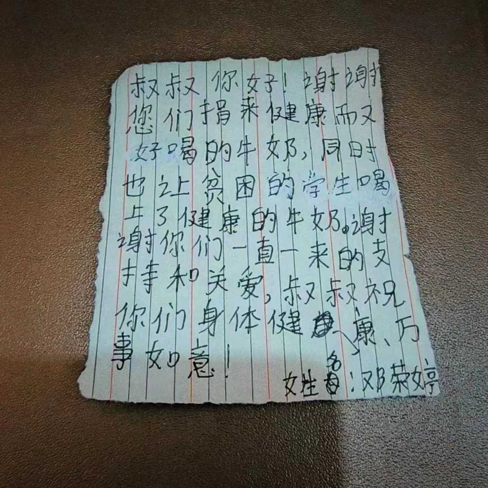鵲落小學(xué)孩子們拿著牛奶開(kāi)心的笑容