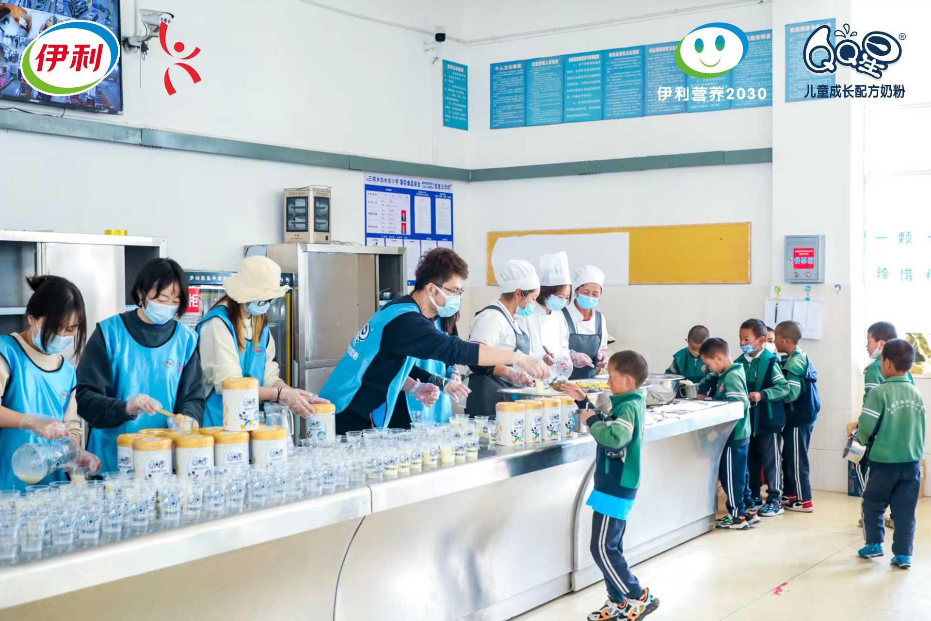 伊利員工為孩子們沖泡奶粉