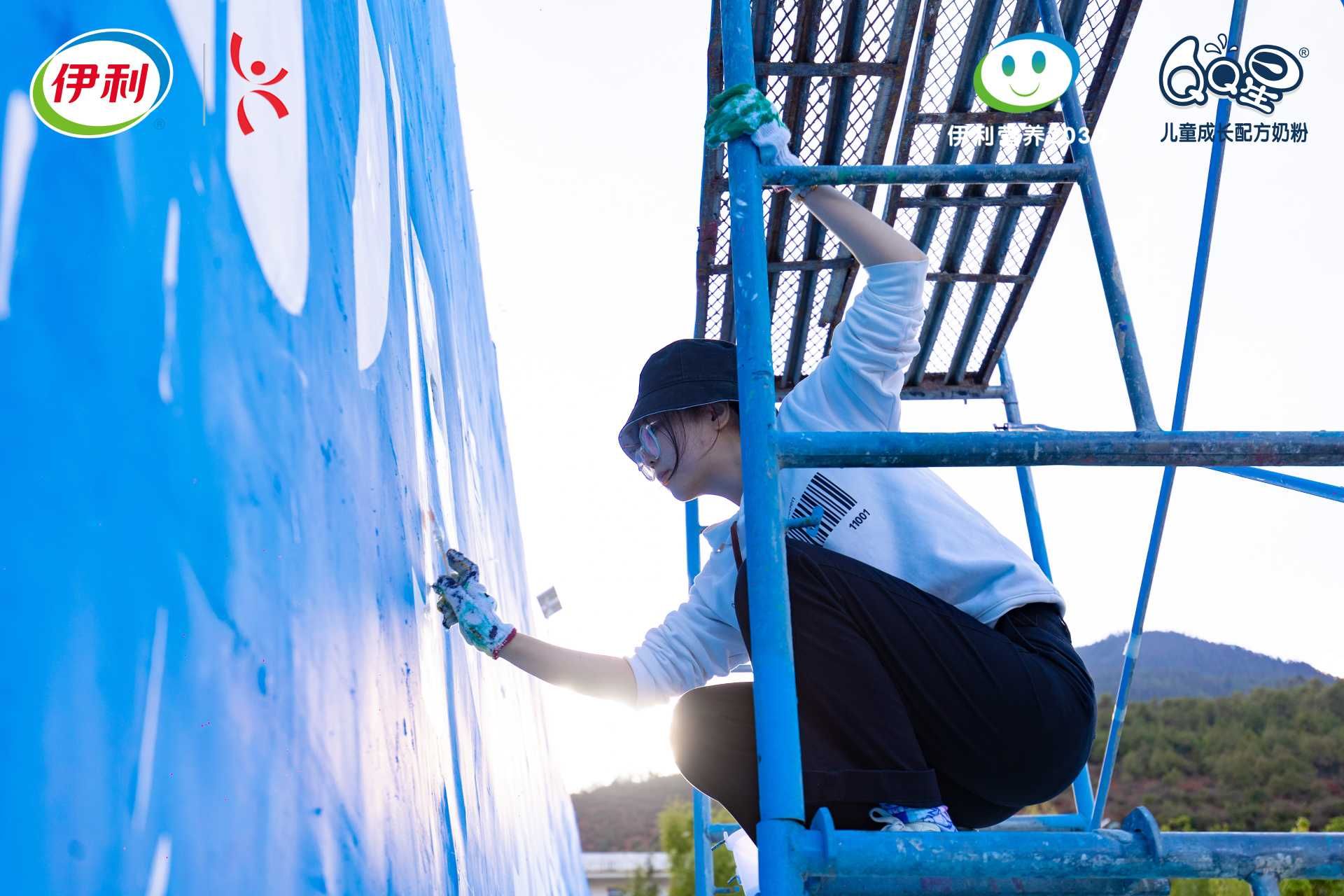 伊利員工為白水臺小學墻繪