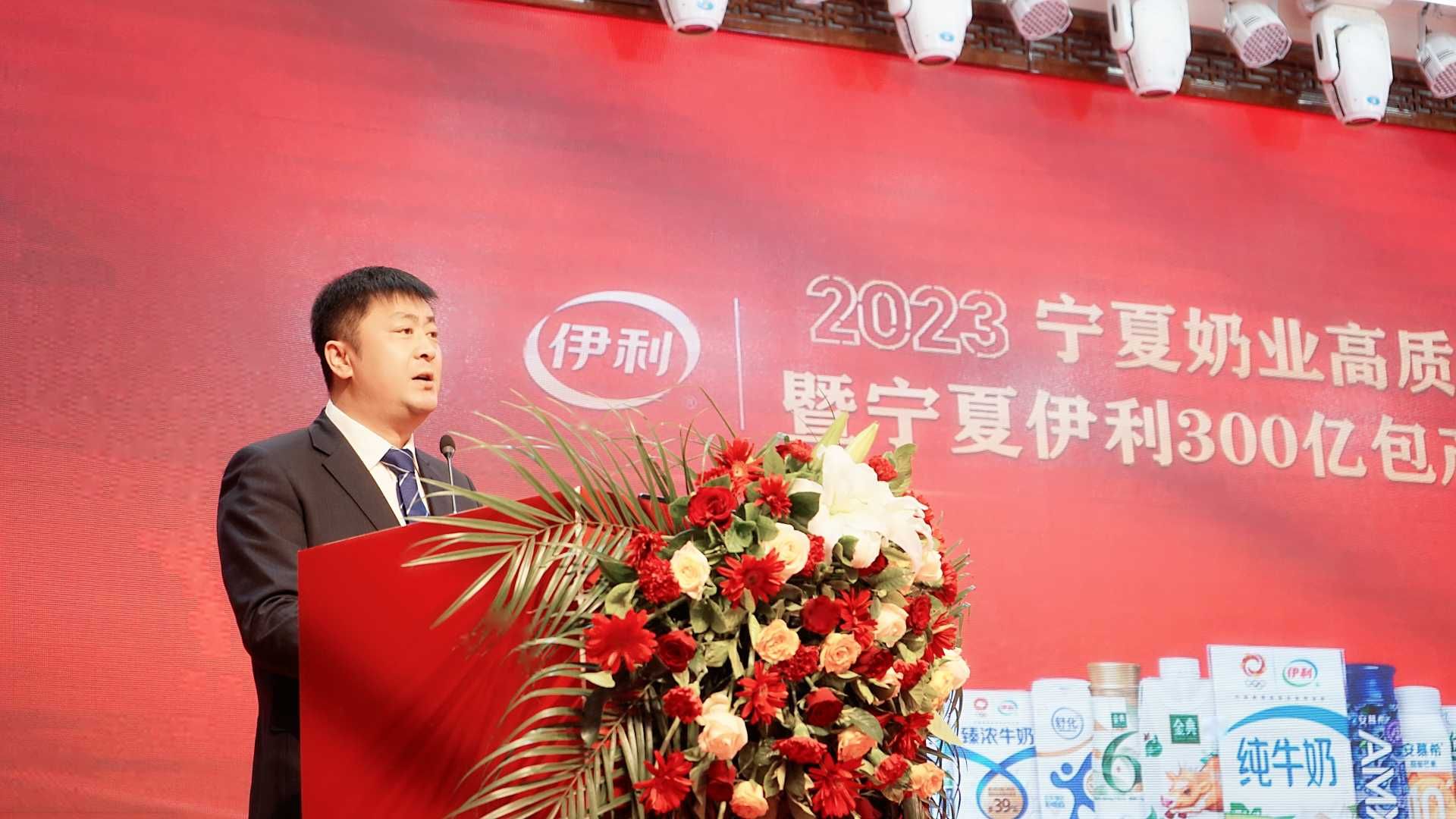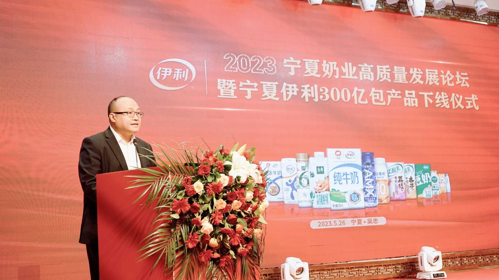 5月26日,2023寧夏奶業(yè)高質(zhì)量發(fā)展論壇暨寧夏伊利300億包產(chǎn)品下線儀式在吳忠市舉行。寧夏回族自治區(qū)吳忠市政協(xié)黨組書記、主席王天軍,自治區(qū)農(nóng)業(yè)農(nóng)村廳黨組成員鄭戈,吳忠市副市長(zhǎng)李玉山,內(nèi)蒙古、遼寧、陜西等省區(qū)奶業(yè)協(xié)會(huì)相關(guān)負(fù)責(zé)人,伊利集團(tuán)執(zhí)行總裁劉春喜,以及來自寧夏農(nóng)墾集團(tuán)、利樂、康美、新巨豐等伊利全球供應(yīng)商、產(chǎn)業(yè)鏈合作伙伴代表,共同見證寧夏奶業(yè)這一里程碑時(shí)刻。