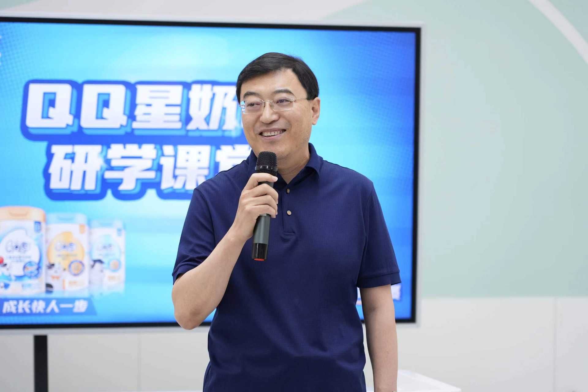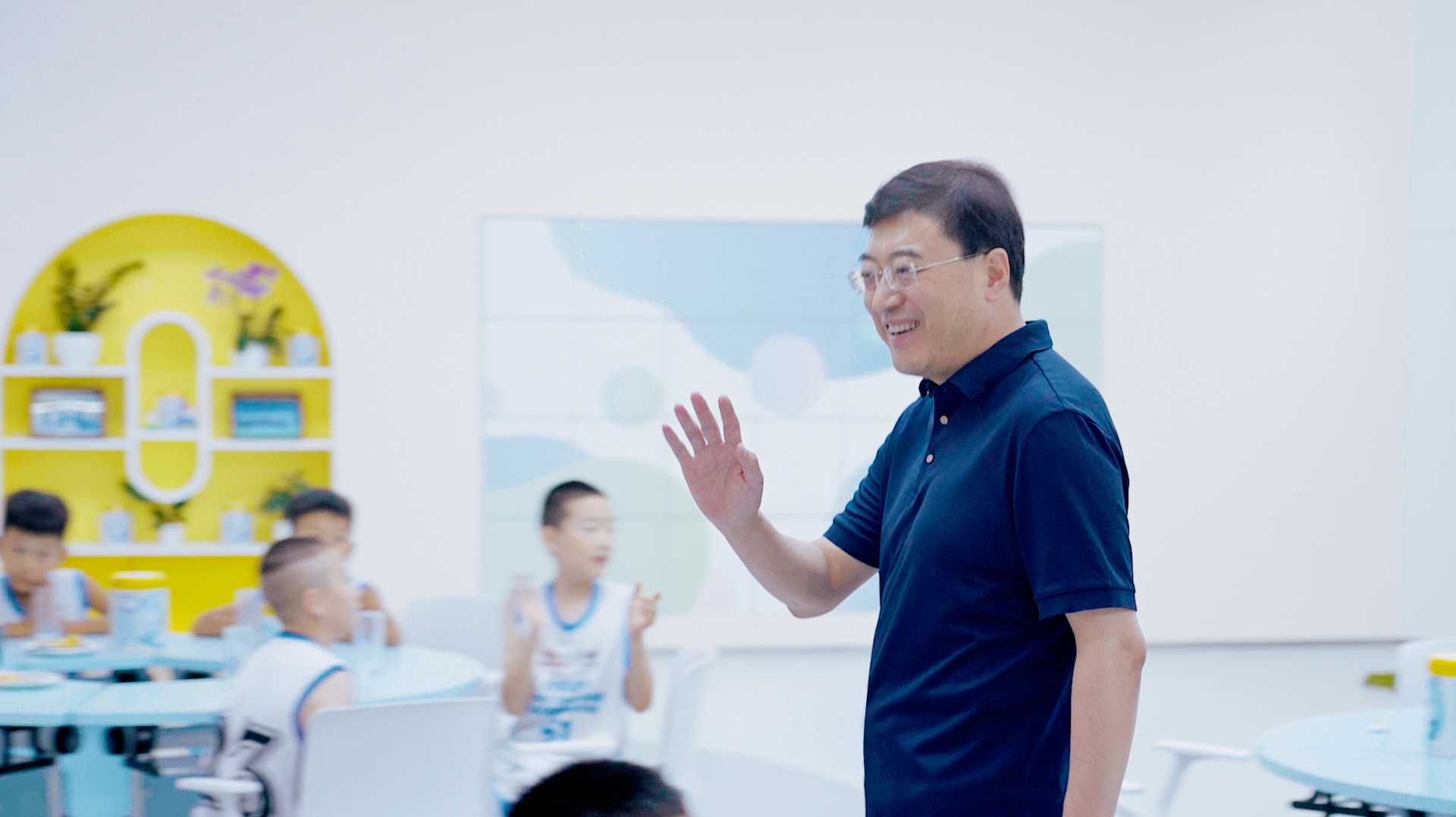 伊利集團董事長兼總裁潘剛歡迎來到伊利現(xiàn)代智慧健康谷參加研學活動的孩子們