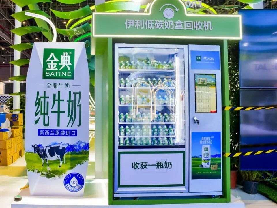 伊利在展廳設(shè)置奶盒回收機倡導(dǎo)綠色低碳生活