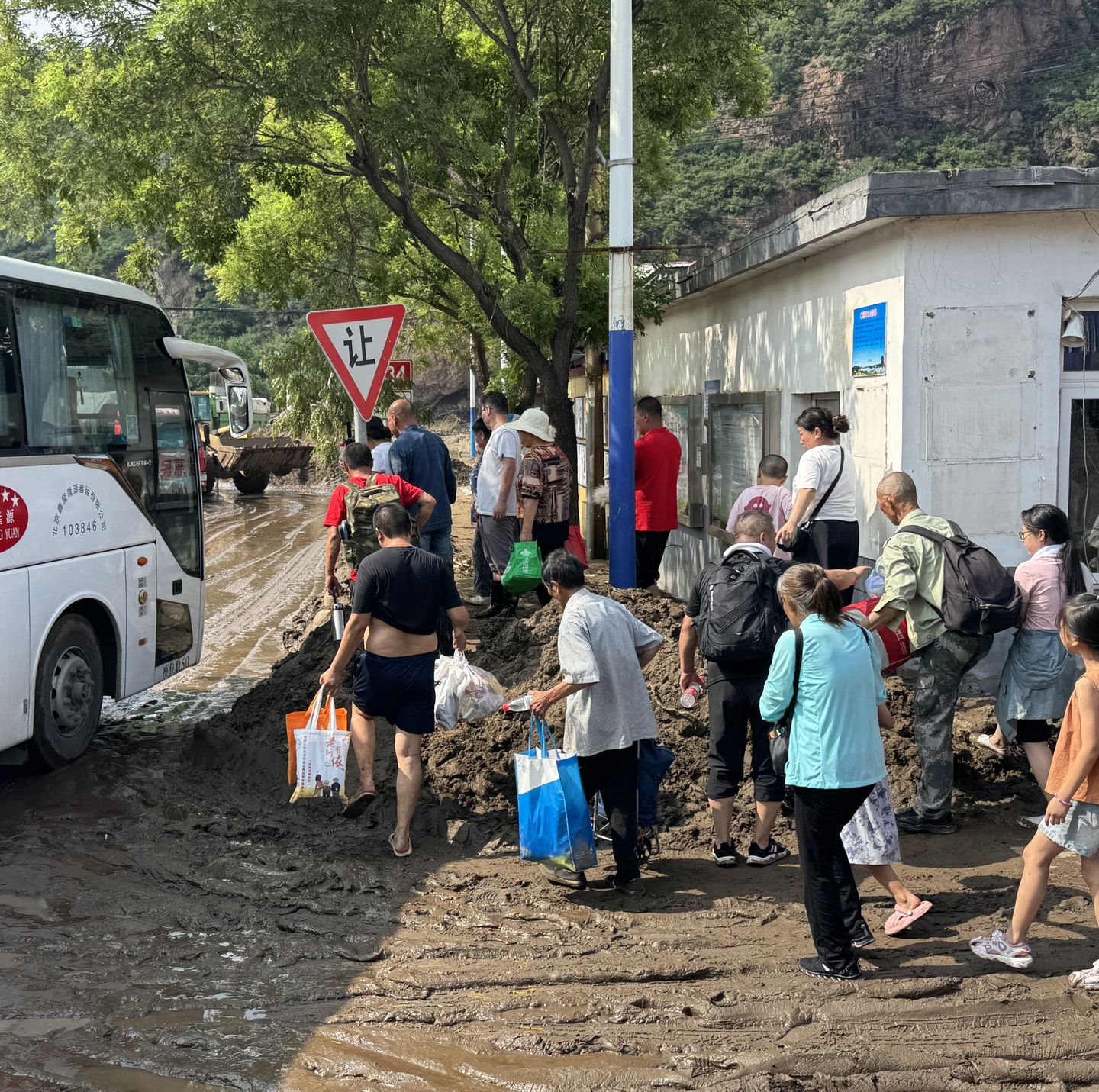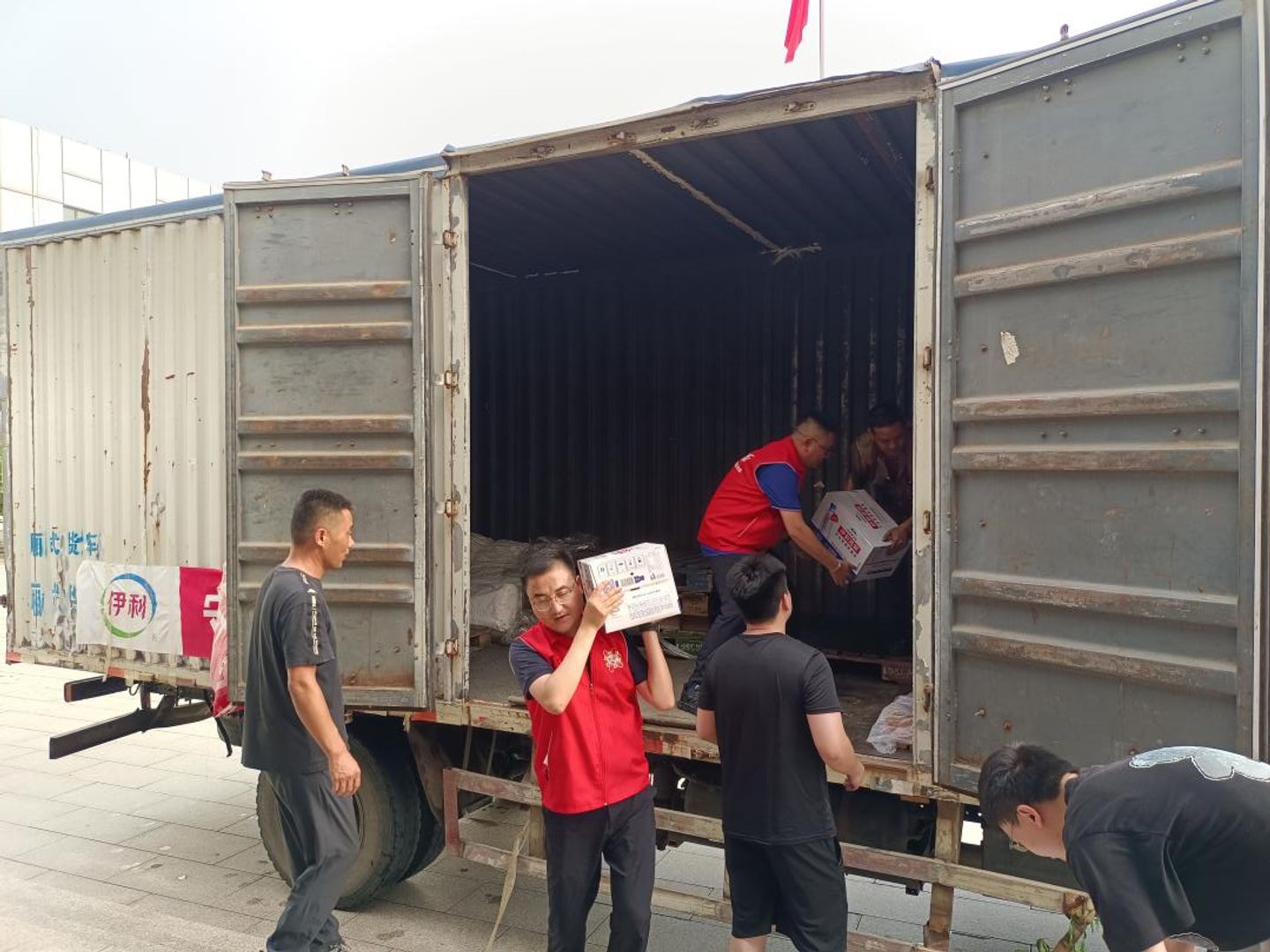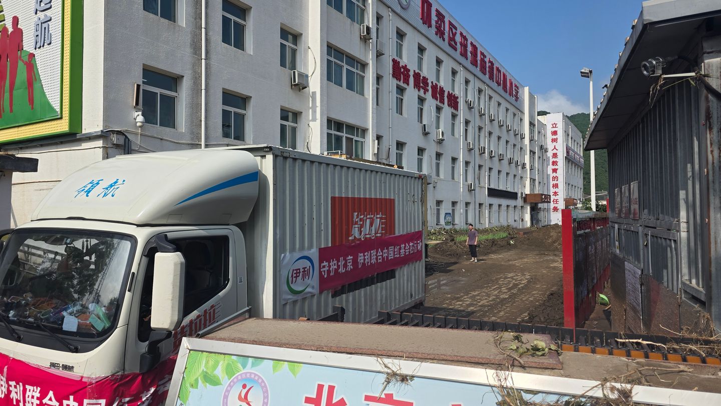 北京懷柔多處出現(xiàn)受損、塌方情況,其中受災(zāi)最嚴(yán)重的地方是懷柔北部的琉璃廟鎮(zhèn)。懷柔琉璃廟鎮(zhèn)中心小學(xué)安置了大量群眾。前往懷柔的伊心向陽志愿者經(jīng)過10個(gè)多小時(shí)顛簸,終于把物資運(yùn)到了安置點(diǎn)卻又面臨無法卸貨的難題。伊心向陽志愿者先投入到清理淤泥的工作中,和懷柔的群眾一起清理出一片干凈、安全區(qū)域,當(dāng)?shù)氐娜罕?、武警官兵都加入到了?duì)伍中,把伊刻活泉礦泉水、金典純牛奶運(yùn)送到安置點(diǎn)內(nèi)。