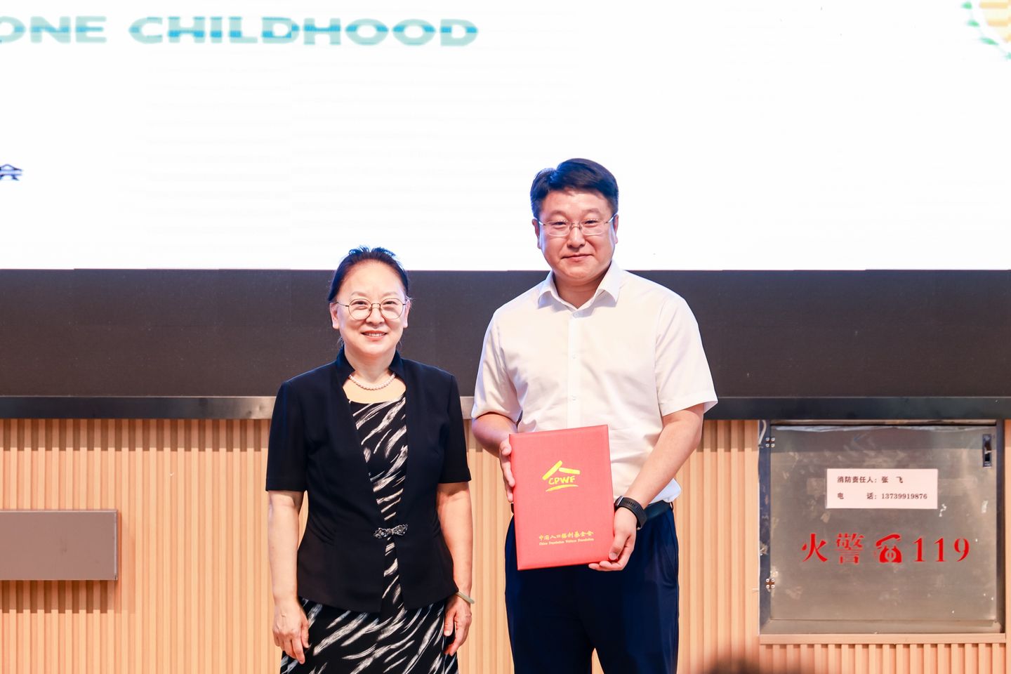 中國(guó)人口福利基金會(huì)副理事長(zhǎng)楊志媛向伊利集團(tuán)頒發(fā)《捐贈(zèng)證書》