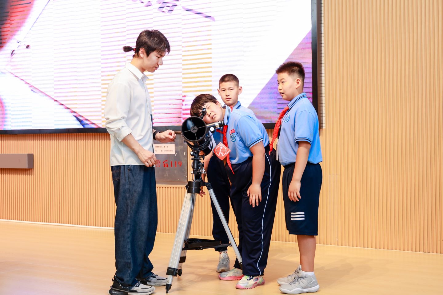 孩子們?cè)诂F(xiàn)場(chǎng)體驗(yàn)望遠(yuǎn)鏡