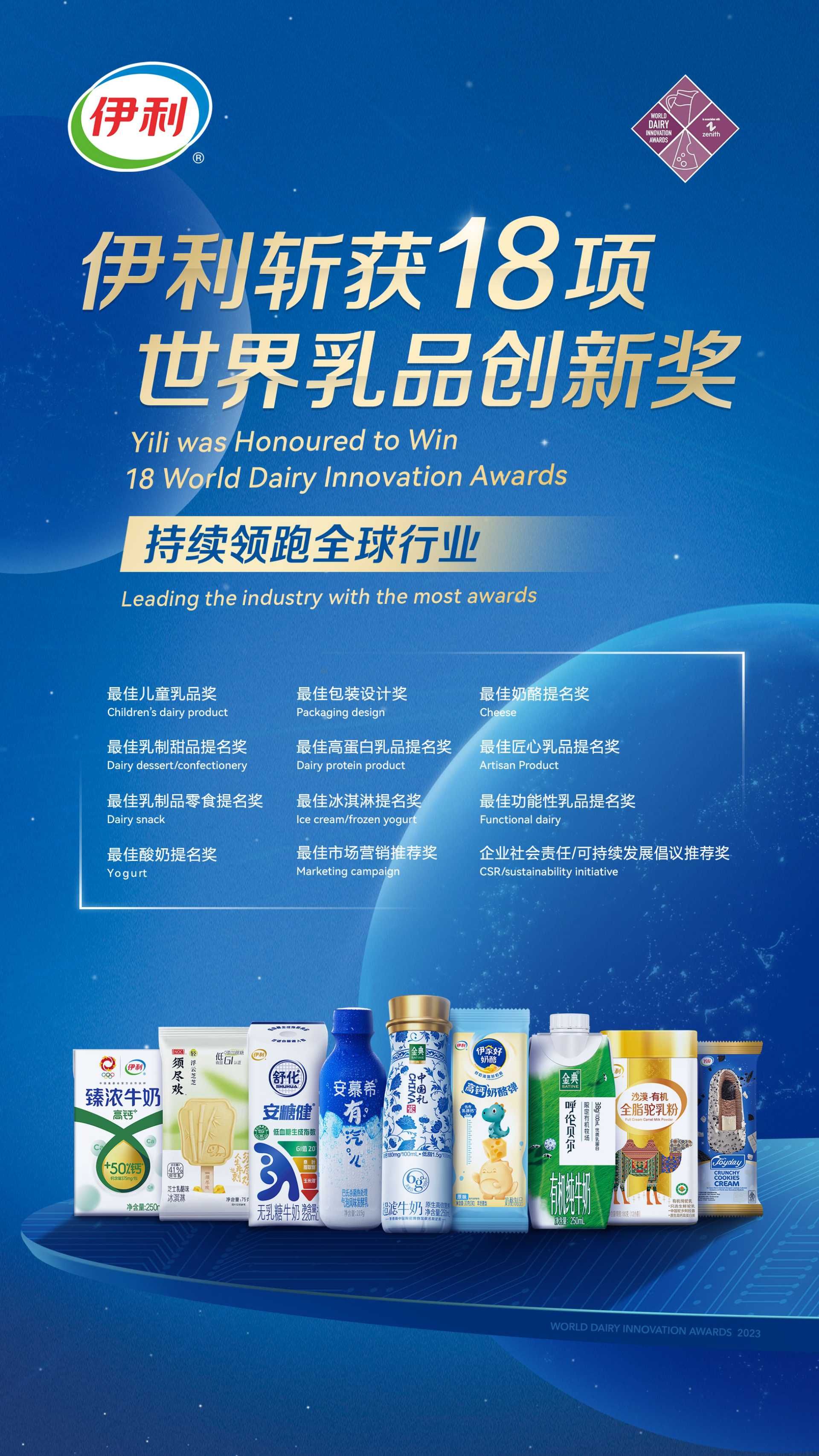 被譽(yù)為“全球乳業(yè)創(chuàng)新風(fēng)向標(biāo)”的2023年度世界乳品創(chuàng)新獎(jiǎng)(World Dairy Innovation Awards)獲獎(jiǎng)名單正式揭曉。伊利斬獲最佳兒童乳品、最佳包裝設(shè)計(jì),以及14項(xiàng)提名獎(jiǎng)和2項(xiàng)推薦獎(jiǎng)的18個(gè)獎(jiǎng)項(xiàng)。