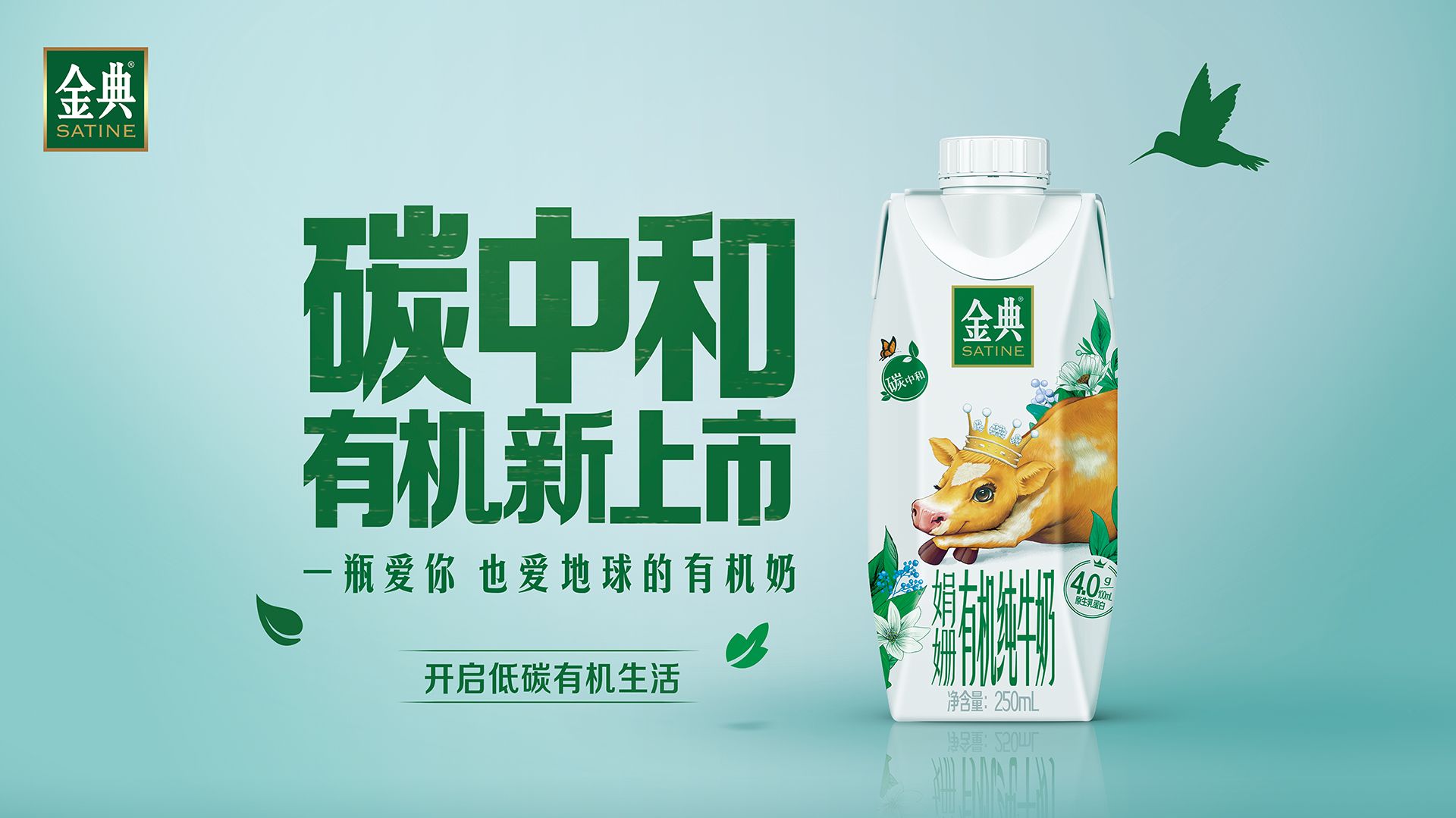 “金典推出首款減碳有機(jī)純牛奶,甄選減碳有機(jī)牧場,獲得四重權(quán)威背書,采用如木包裝,打造一杯全程減碳的有機(jī)奶”